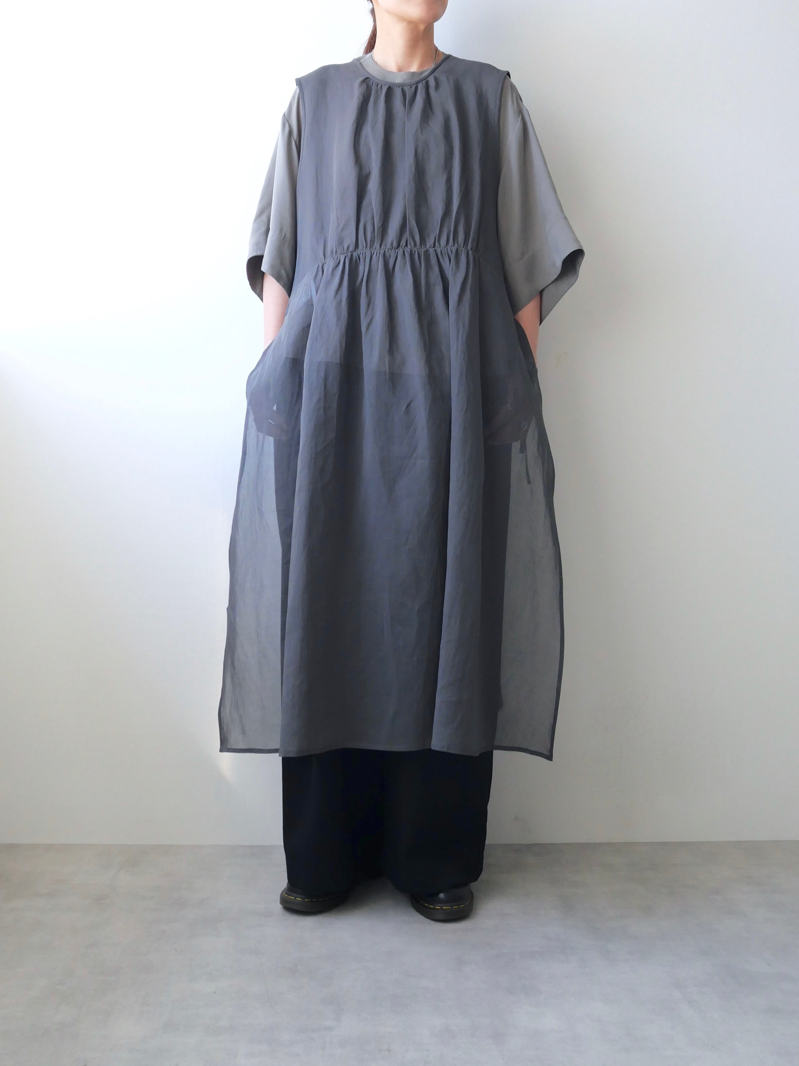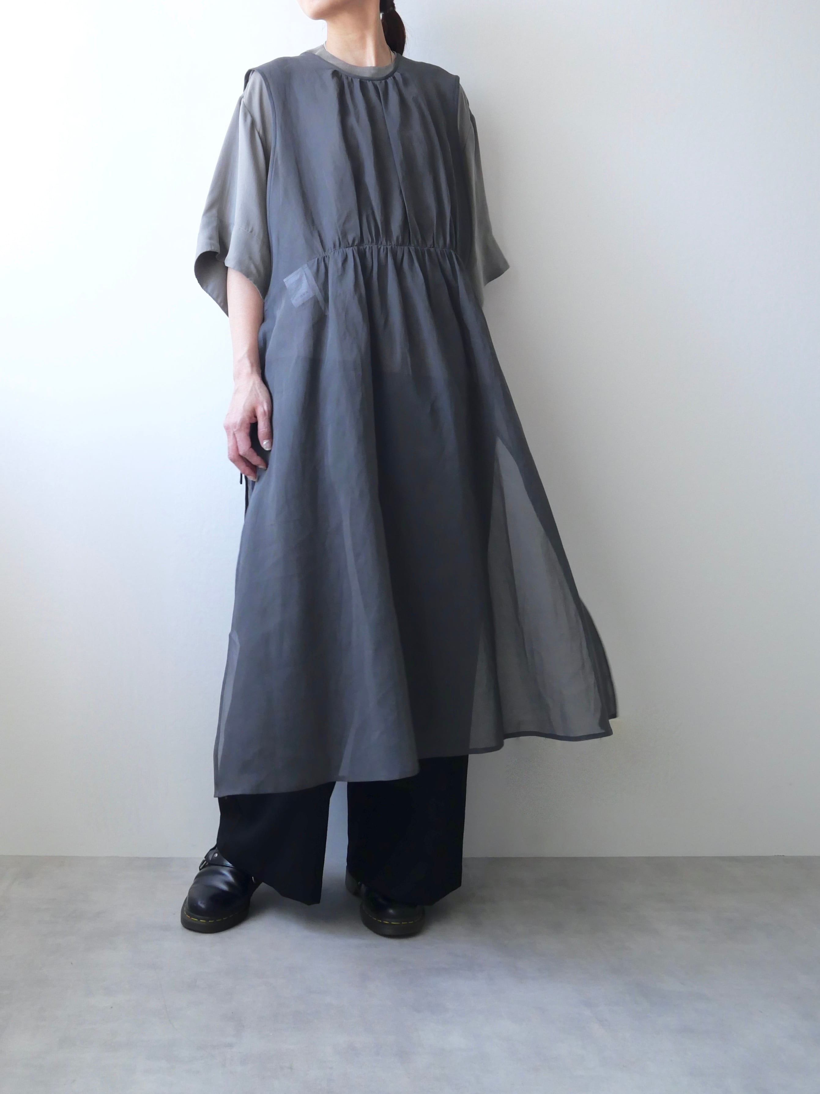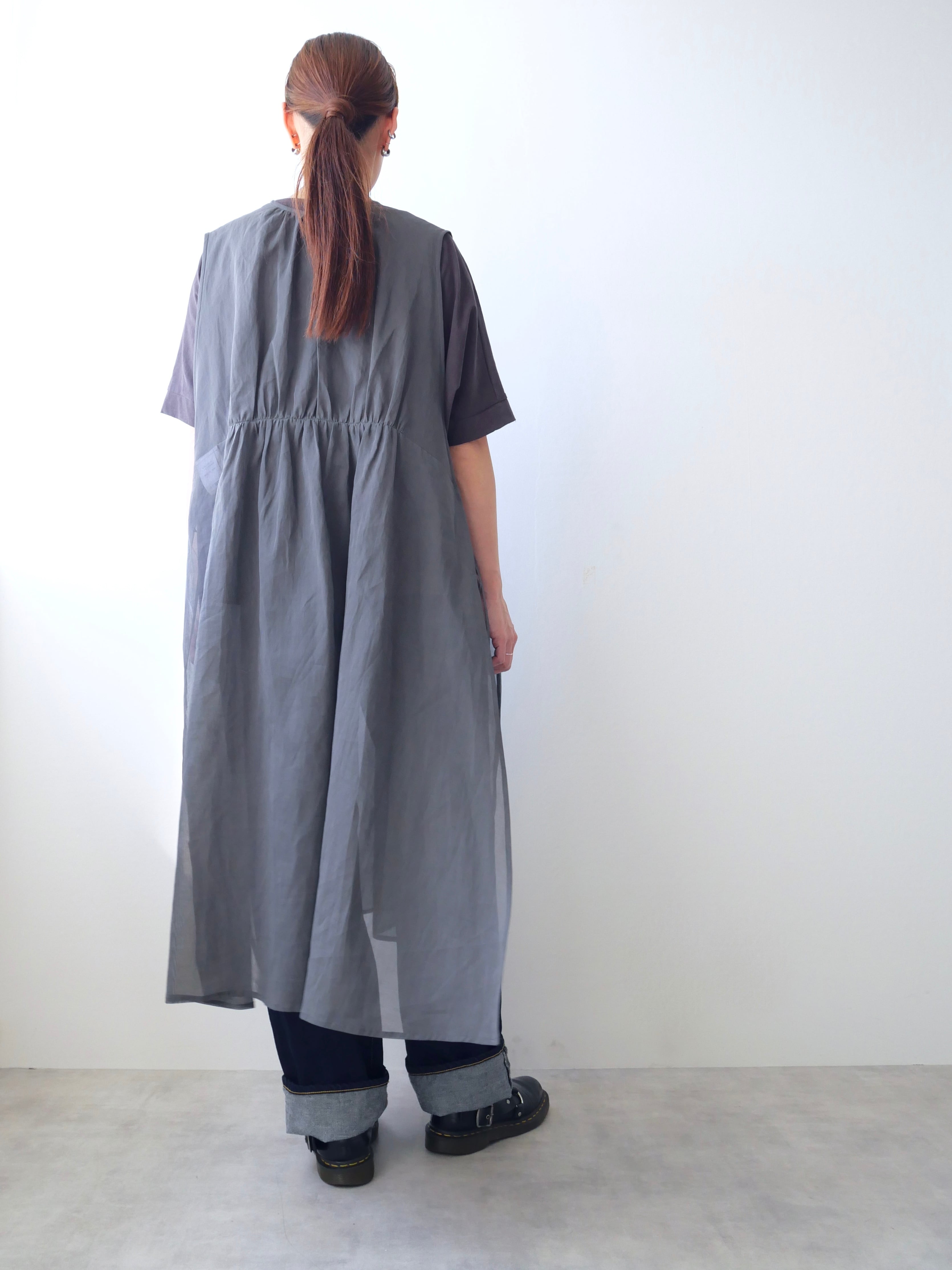 コットンオーガンジーの透け感が重ね着を楽しませてくれるベストタイプの2way short dress。