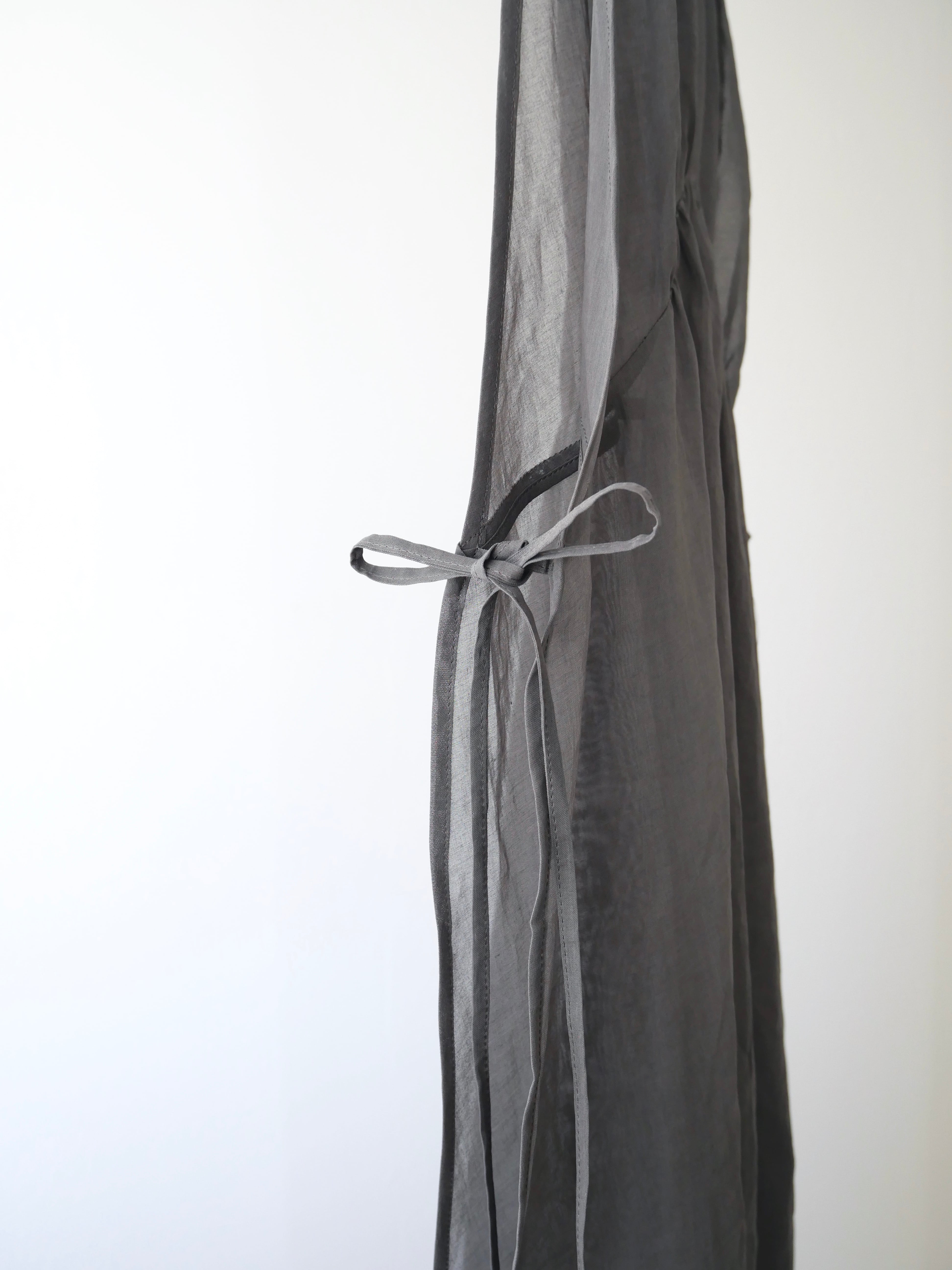 両サイドはリボンを結んでとめる仕様なので、中に着るお洋服のサイズ感を気にせずに合わせていただけます。