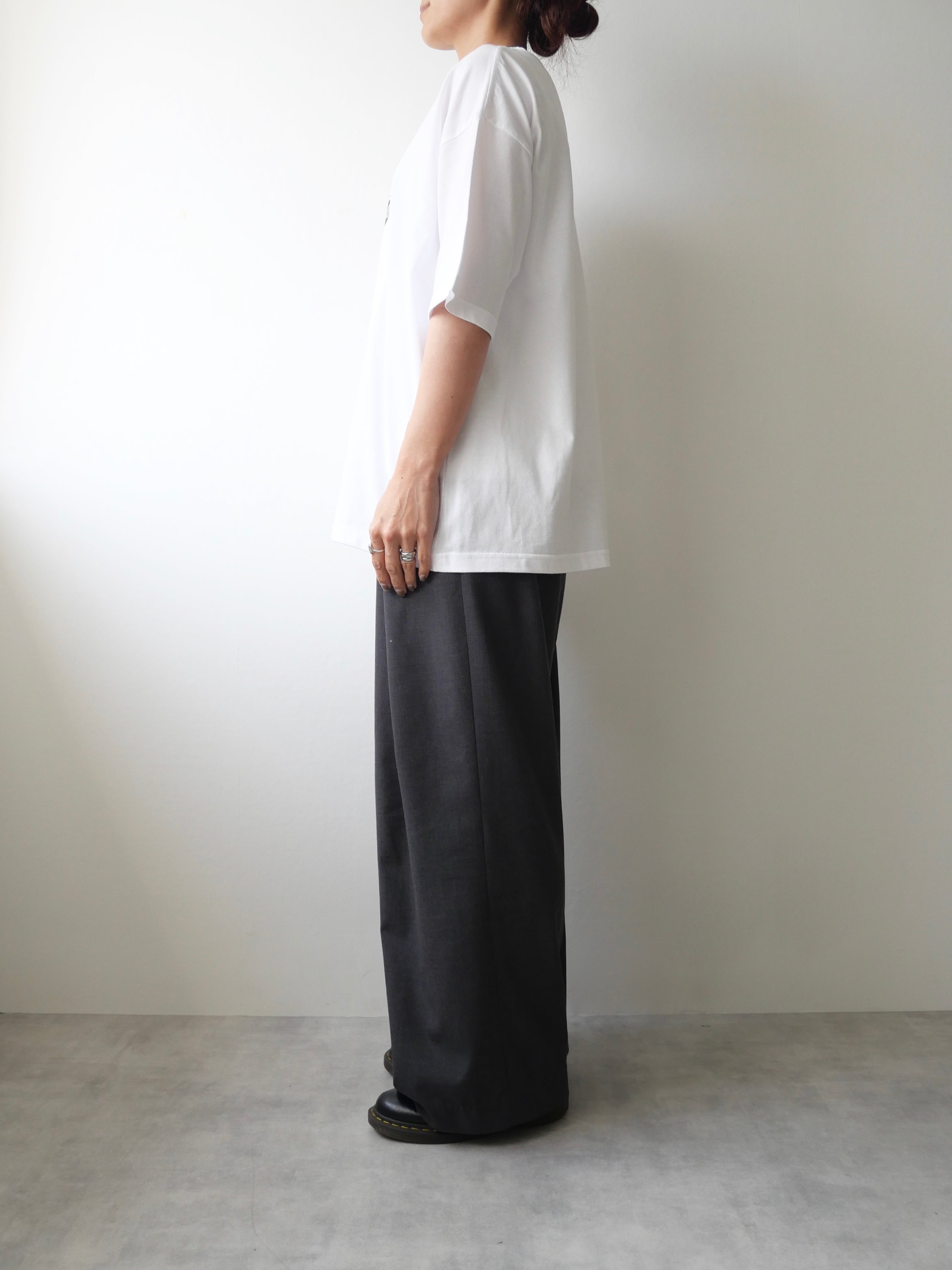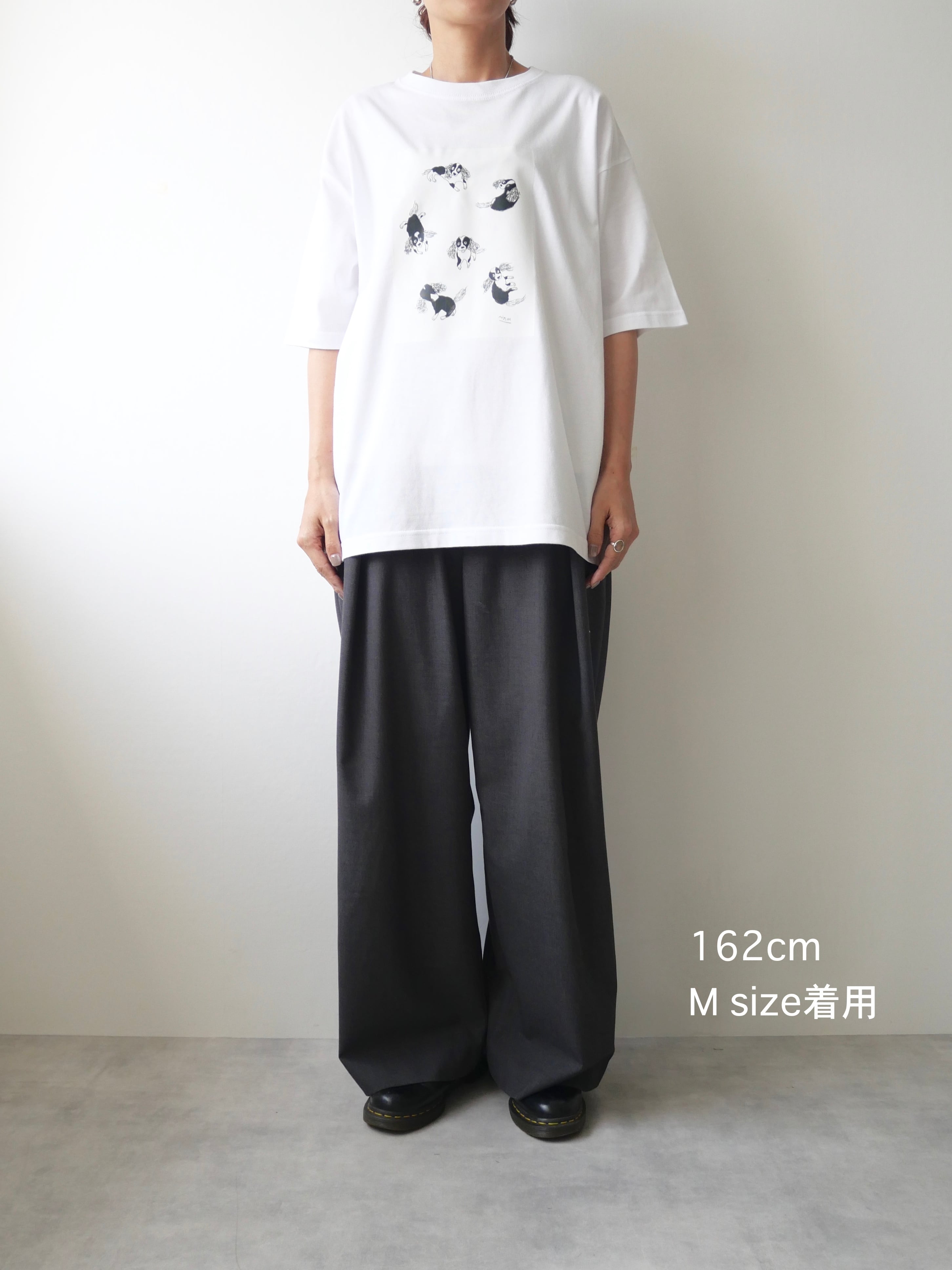 身丈・身幅・肩幅のバランスにこだわった抜け感が魅力のTシャツにmitsouさんのシュールなイラストをプリント。老若男女の幅広い方々に着ていただけて、大人かわいい、ツルっと光沢のあるプリントでカジュアルになり過ぎないTシャツを目指しました。