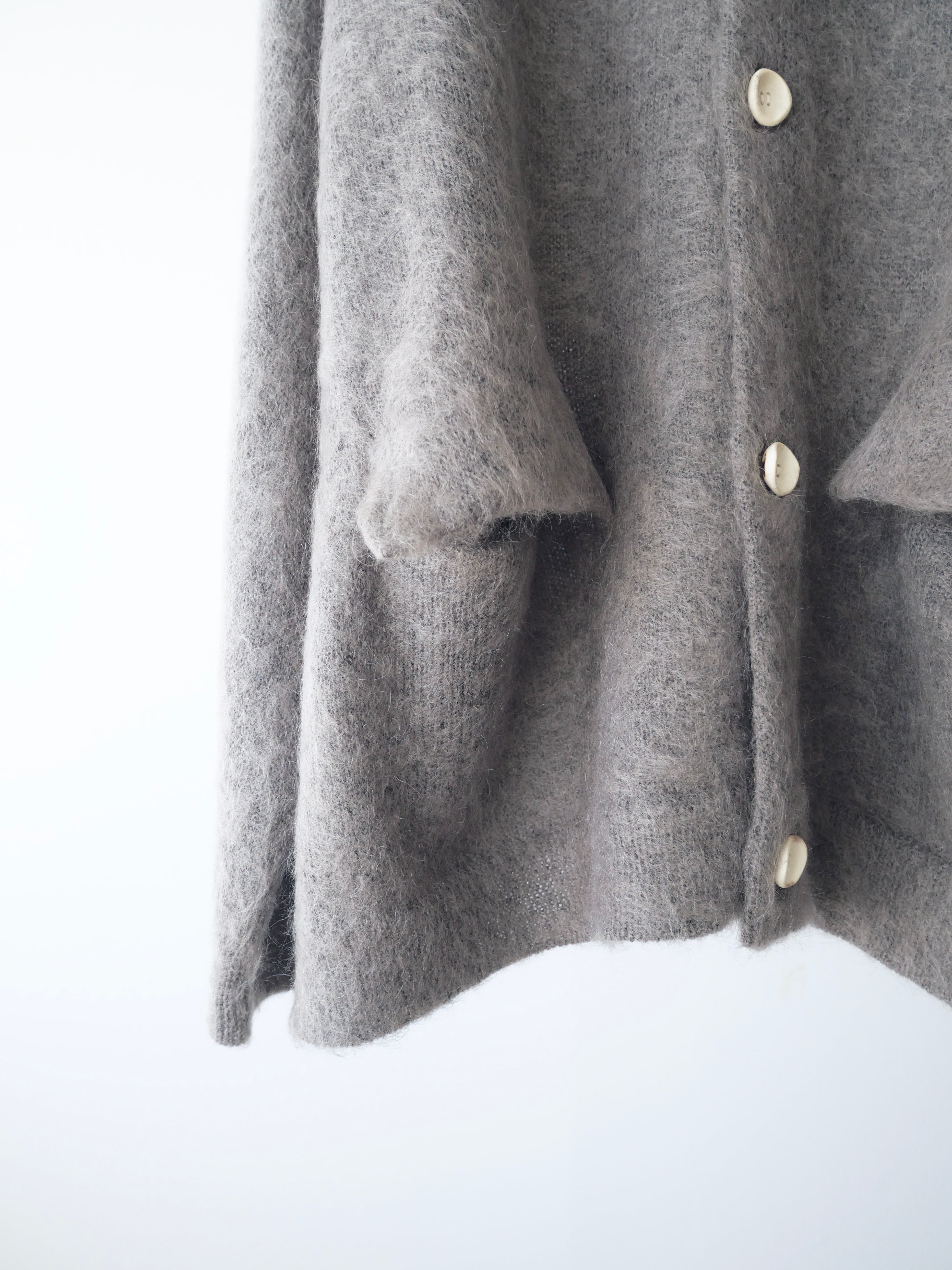 やわらかい肌ざわりと絹のような光沢が特徴のモヘア素材を使用したカーディガンです。