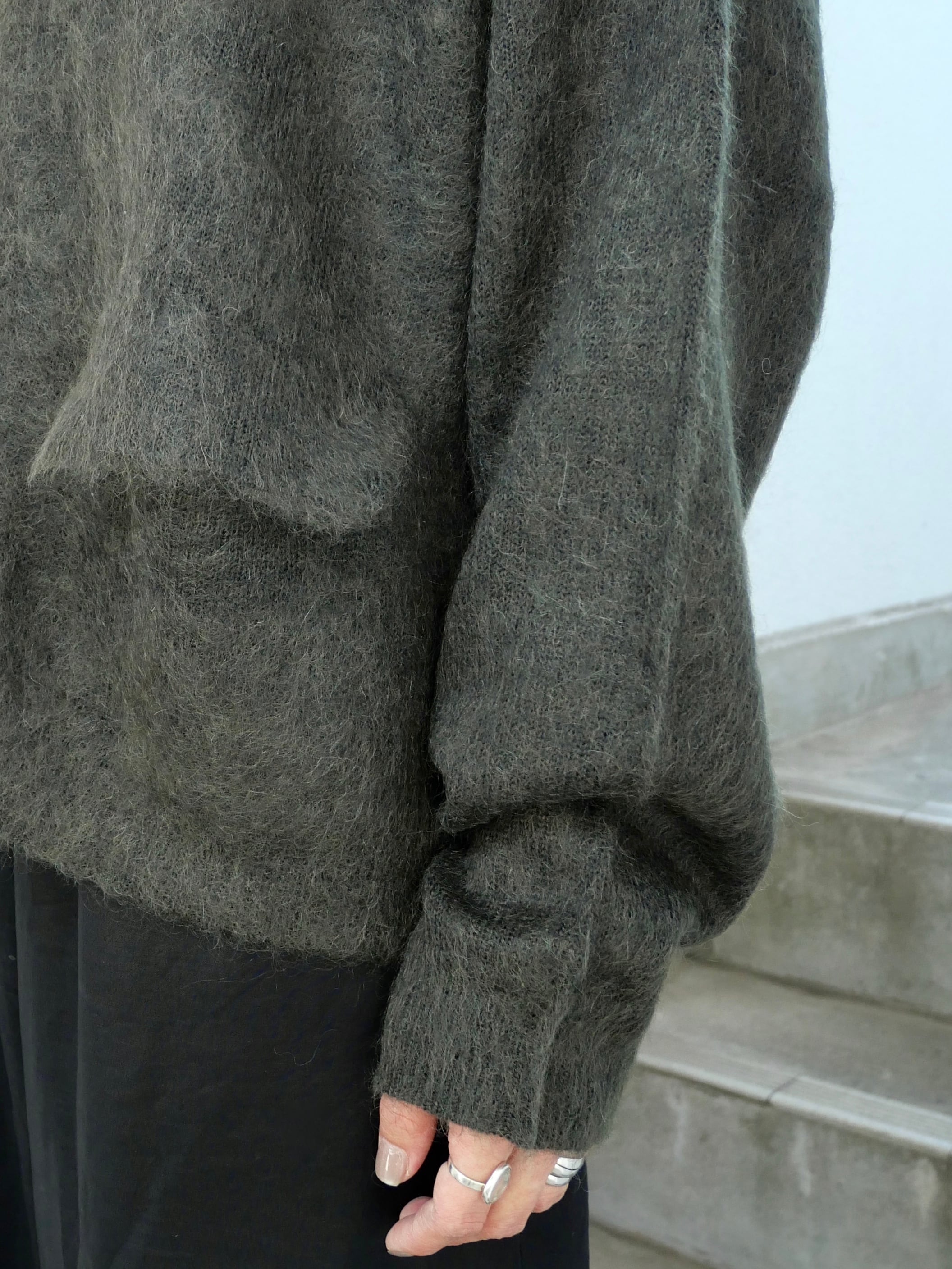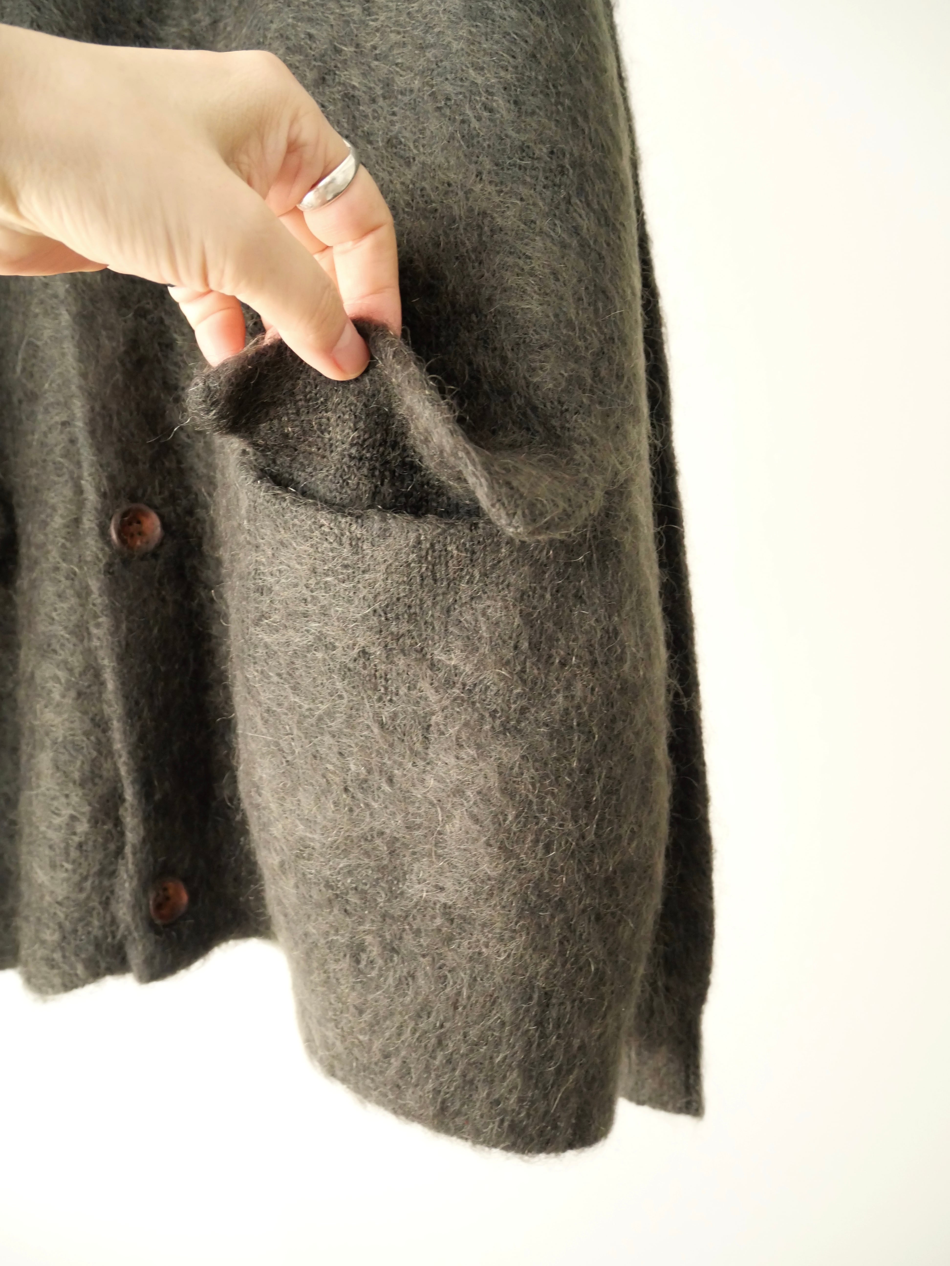 やわらかい肌ざわりと絹のような光沢が特徴のモヘア素材を使用したカーディガンです。