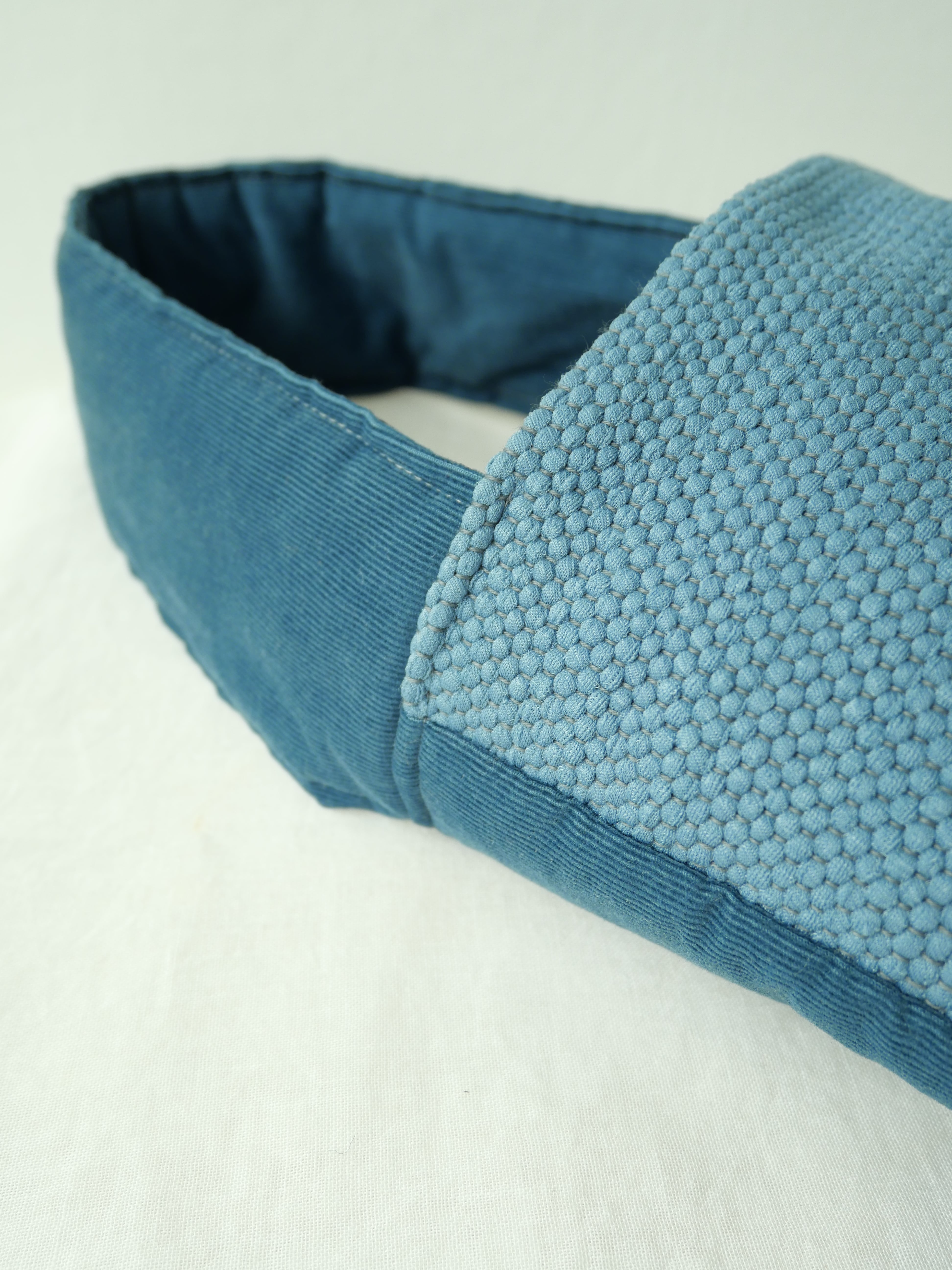 手織り(裂き織り)とコーデュロイの生地を合わせたバッグを作りました。