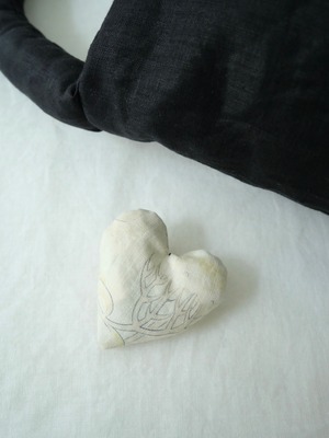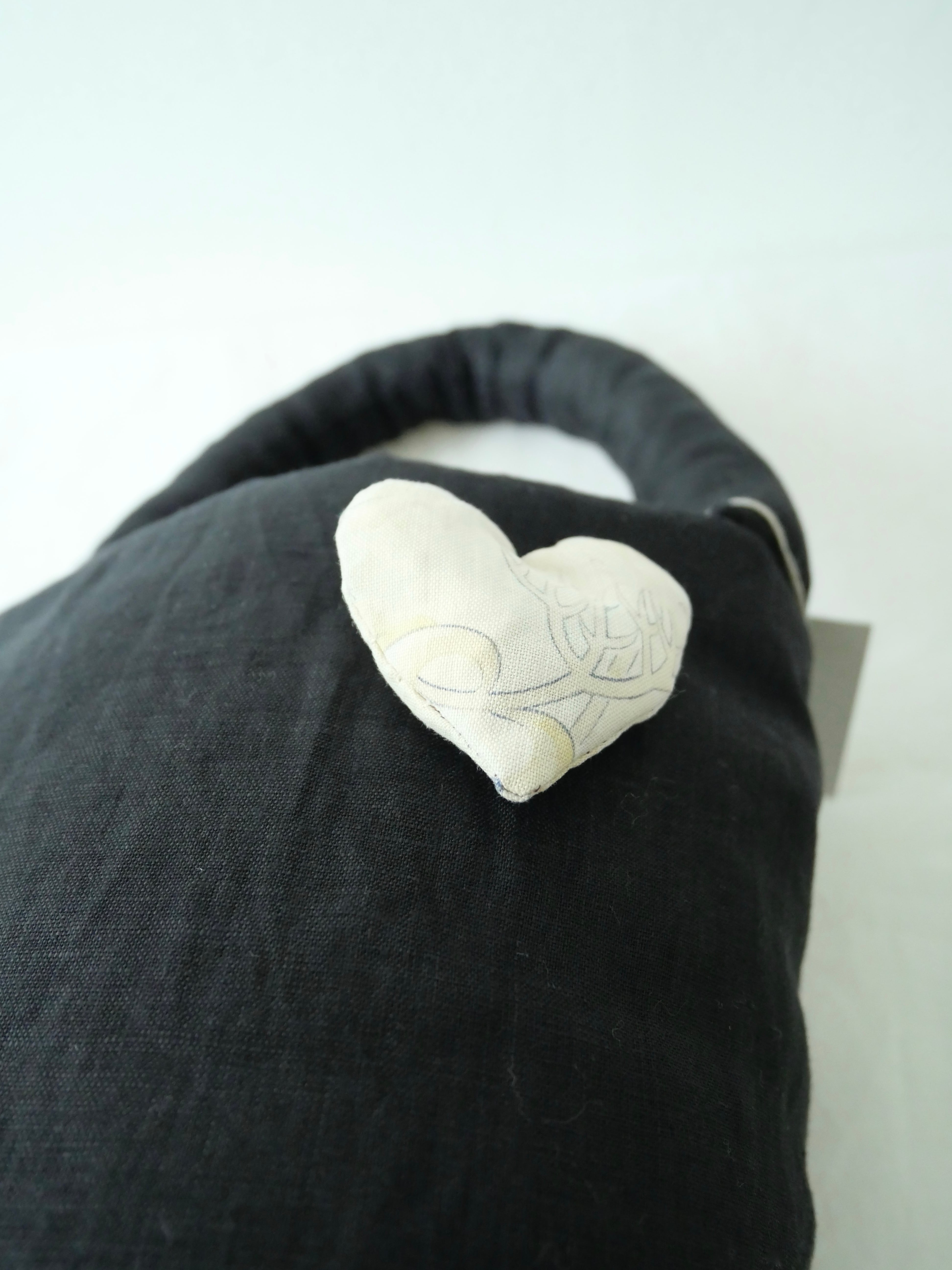 中綿入りで持ち手もぷっくりしたバッグ。取り外せるハートを付けました。