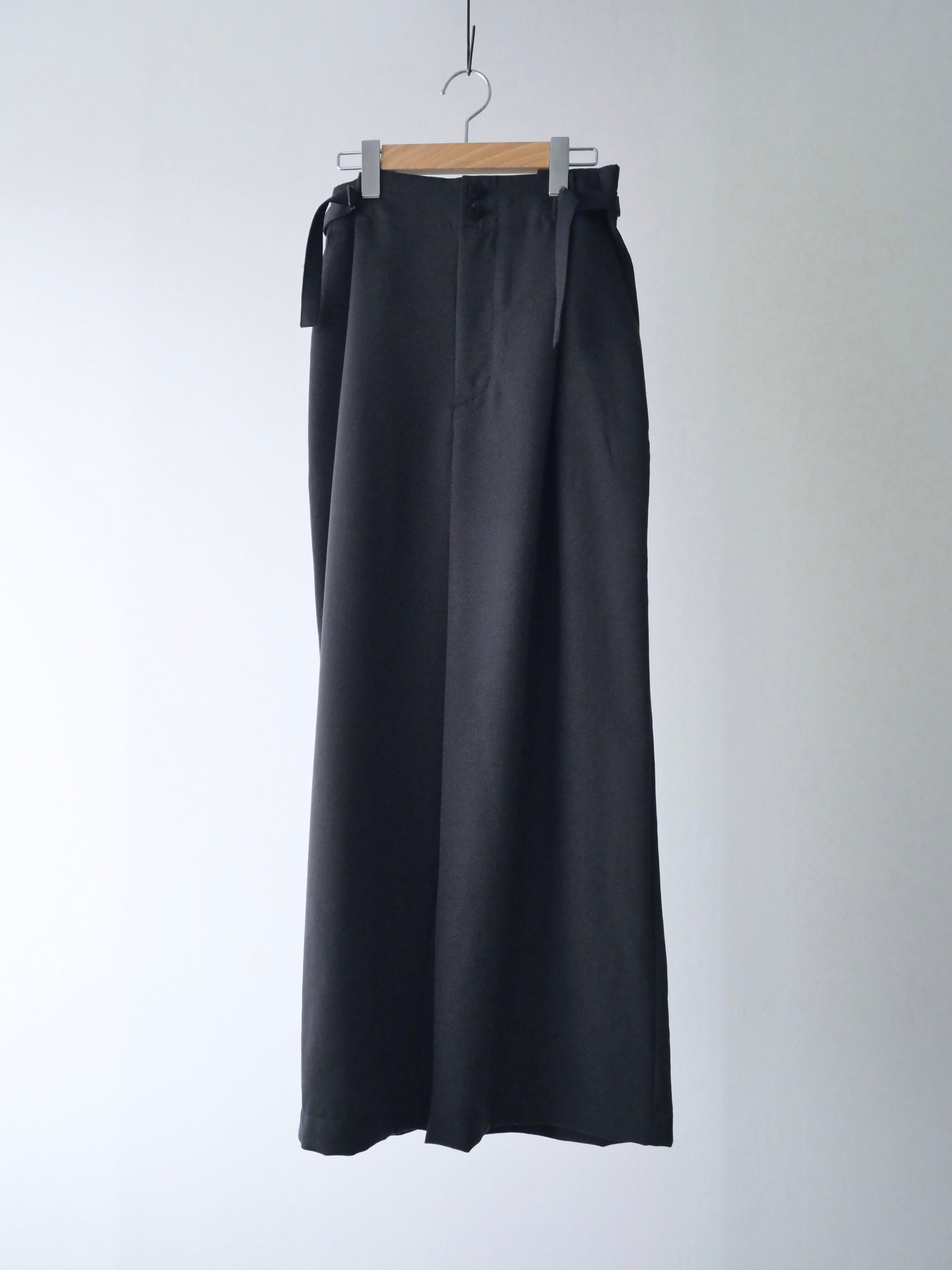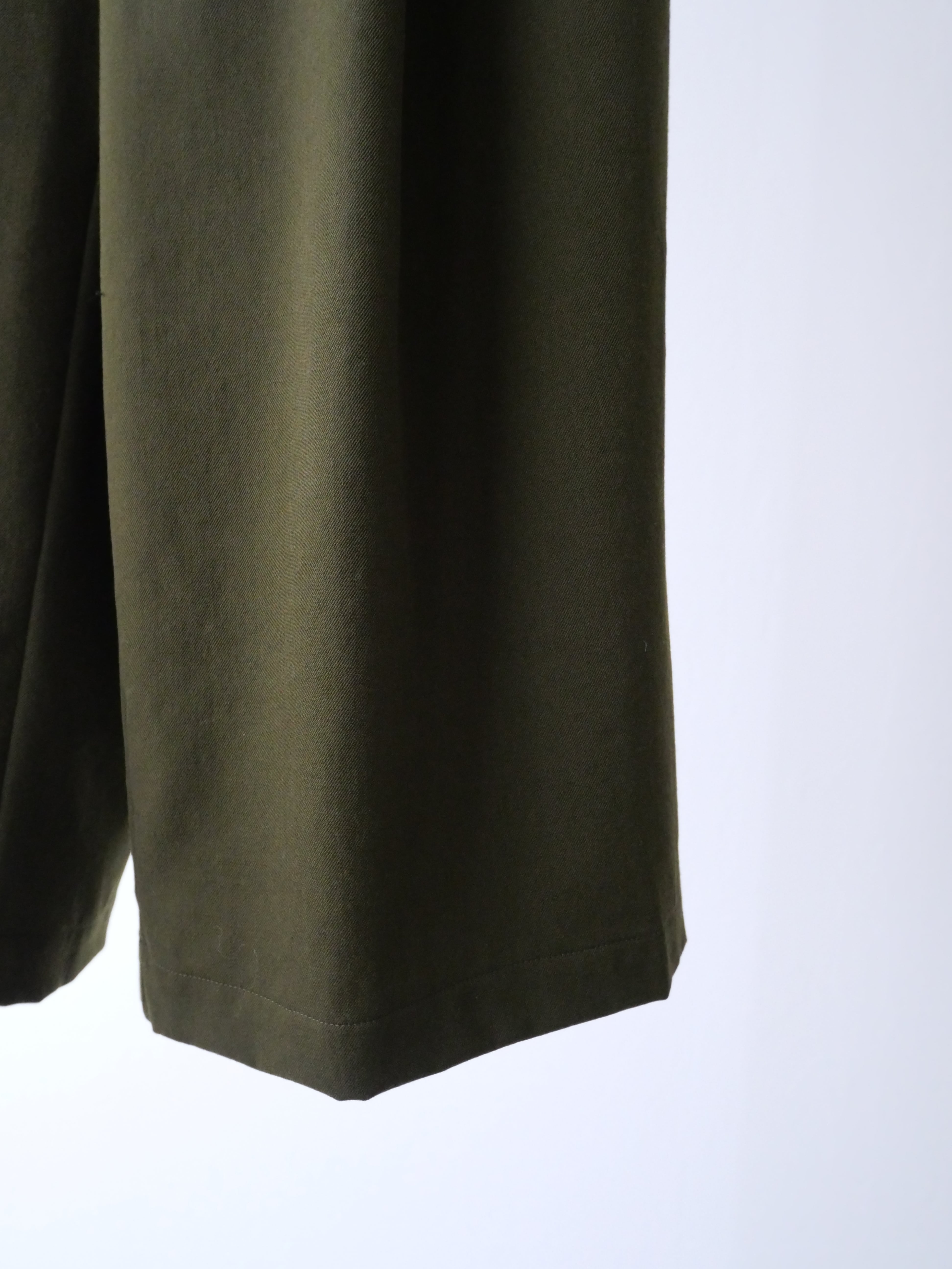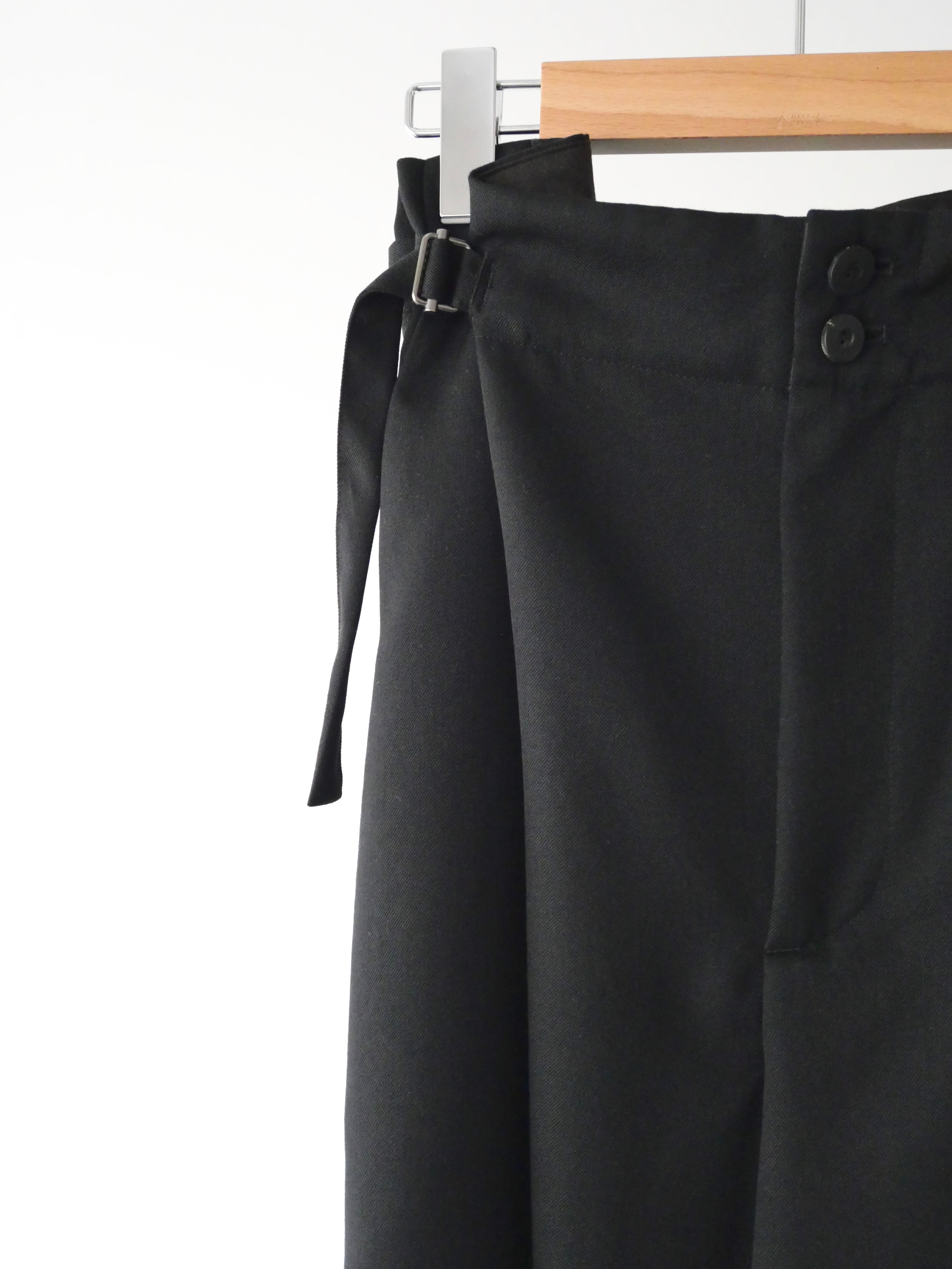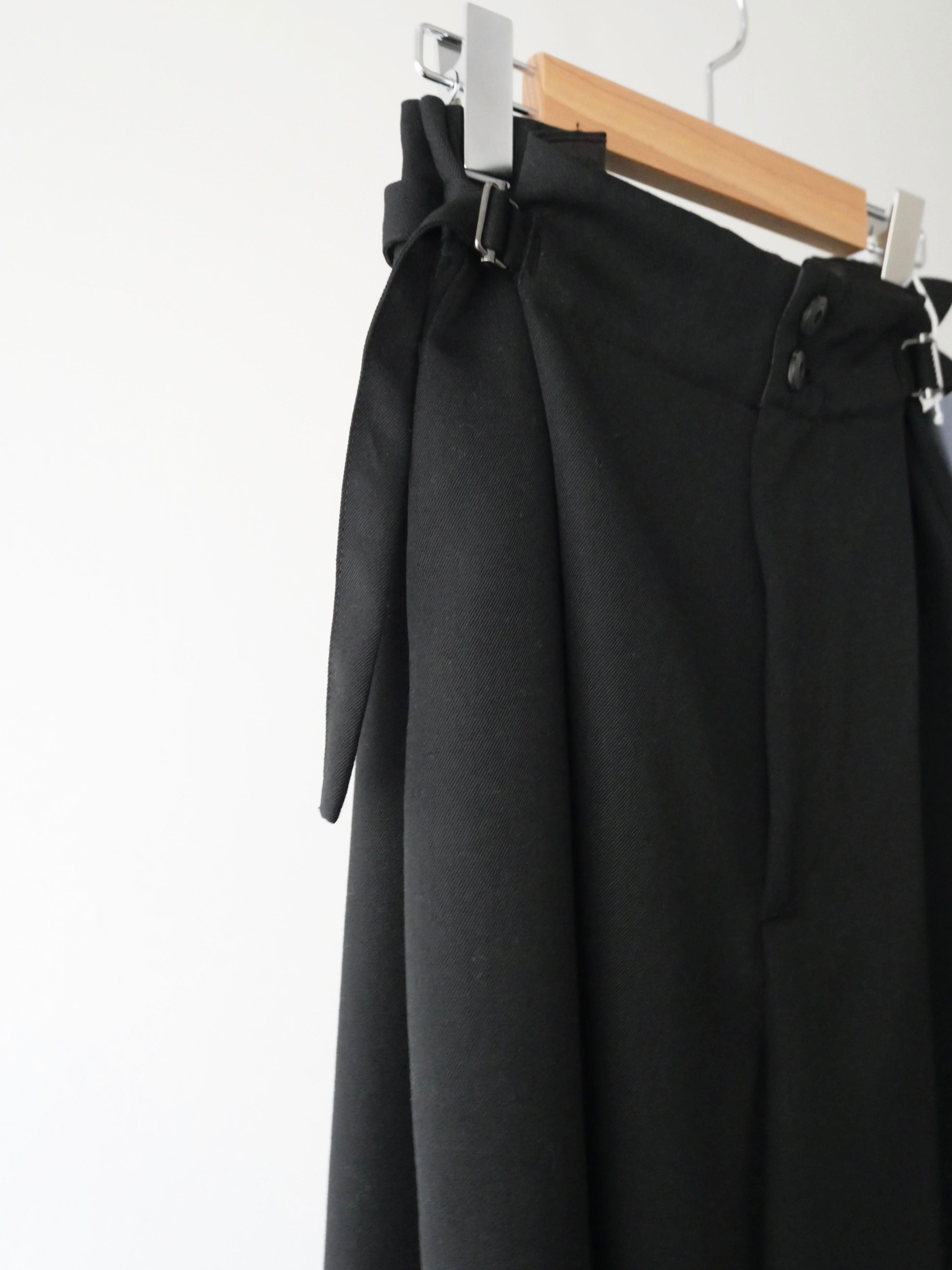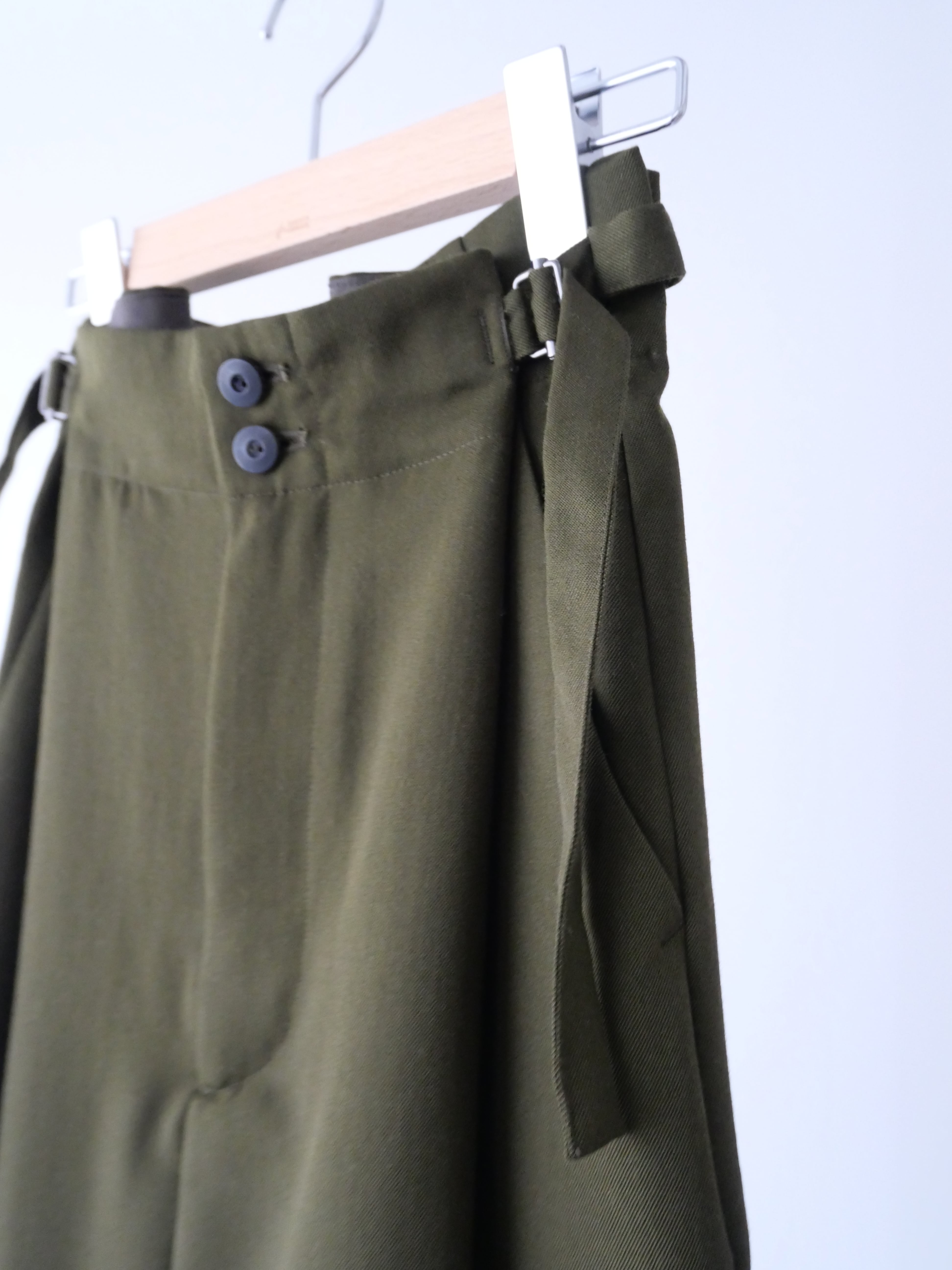 フロントとバックに装飾された4つのアジャスターベルト。アジャスターを締めてウエストを絞ることでタックがうまれ、ウエストまわりに自然なゆとりができ、動きやすさと快適性のあるゆったりとしたサイズ感となります。