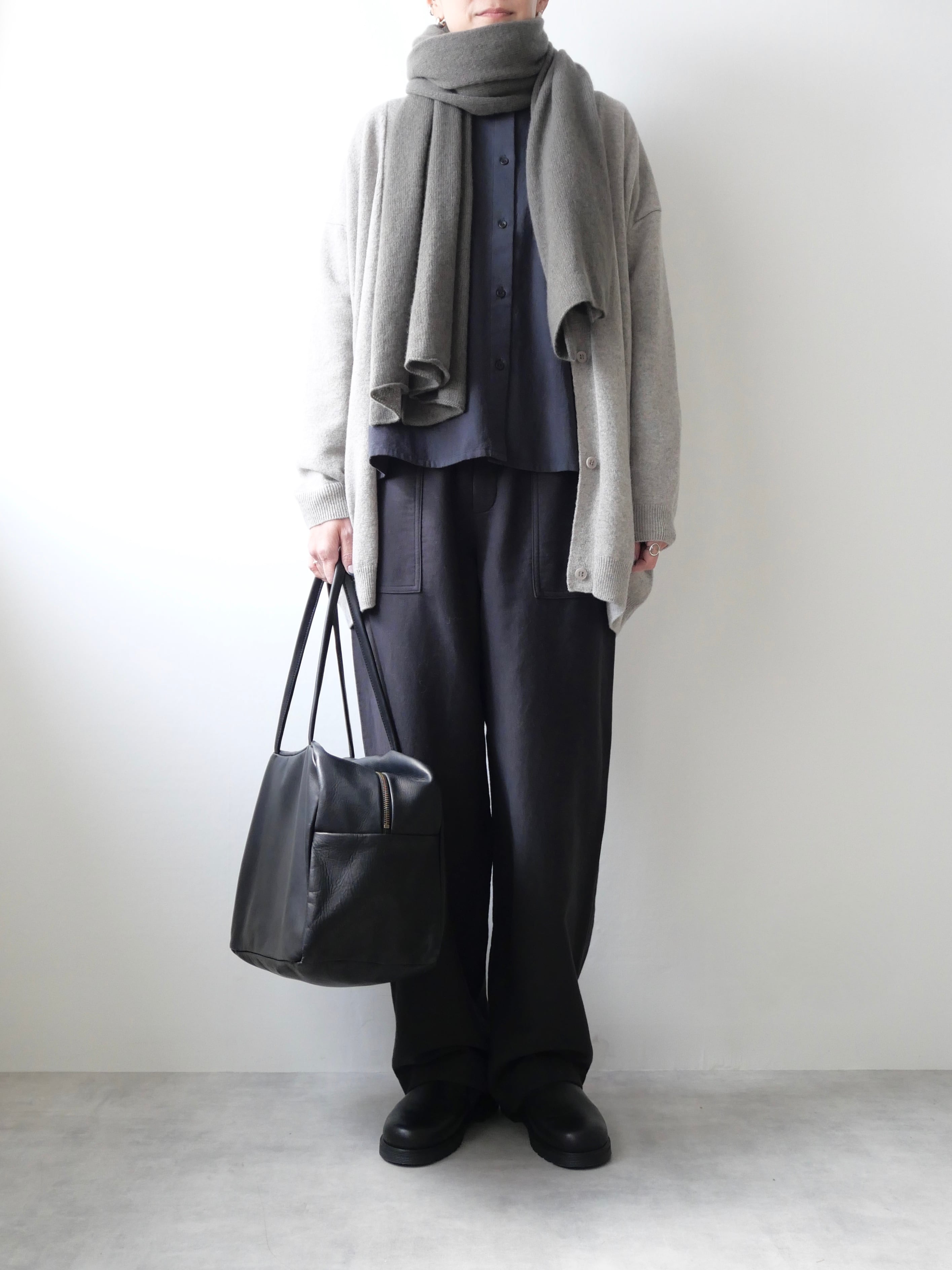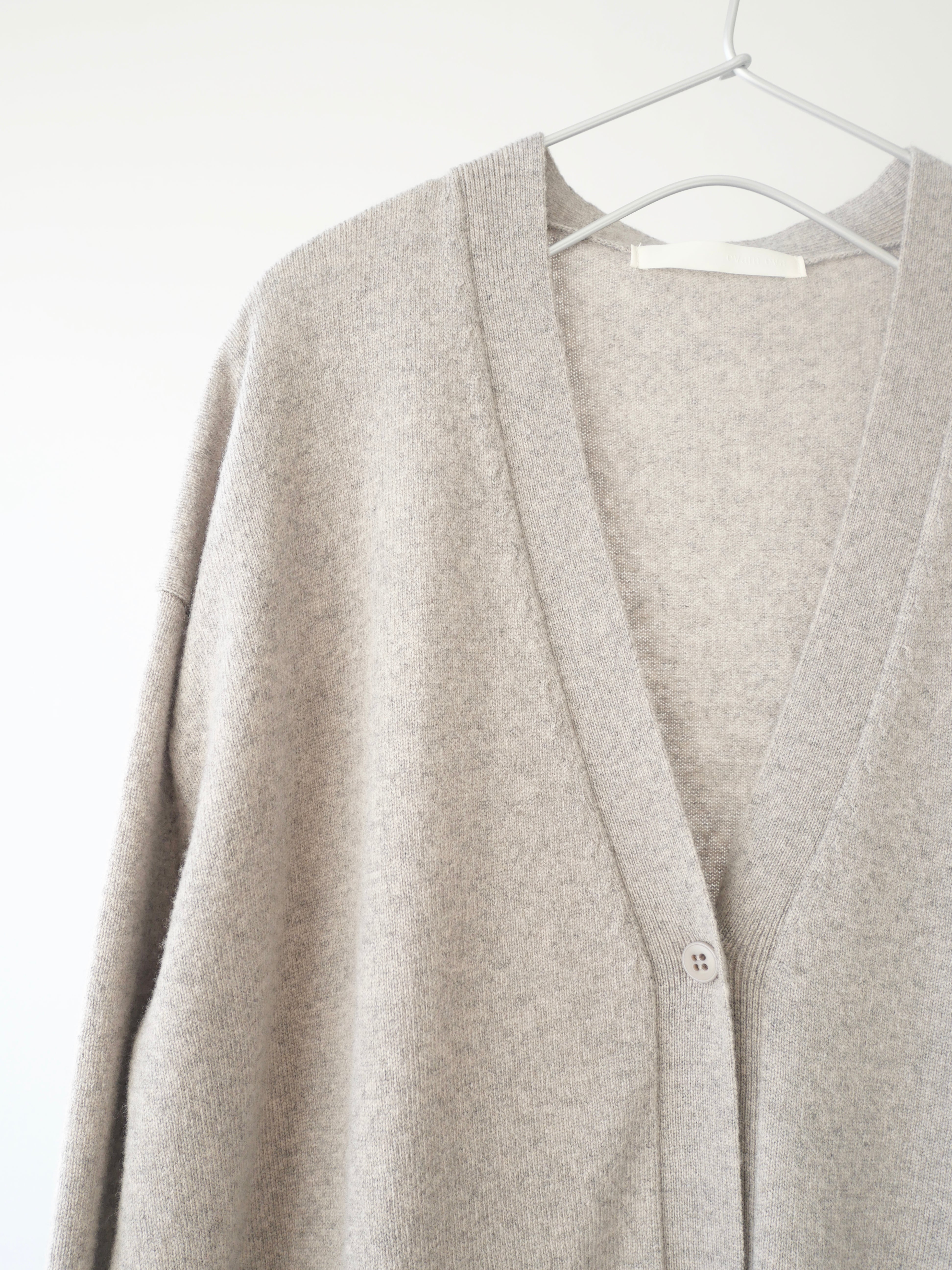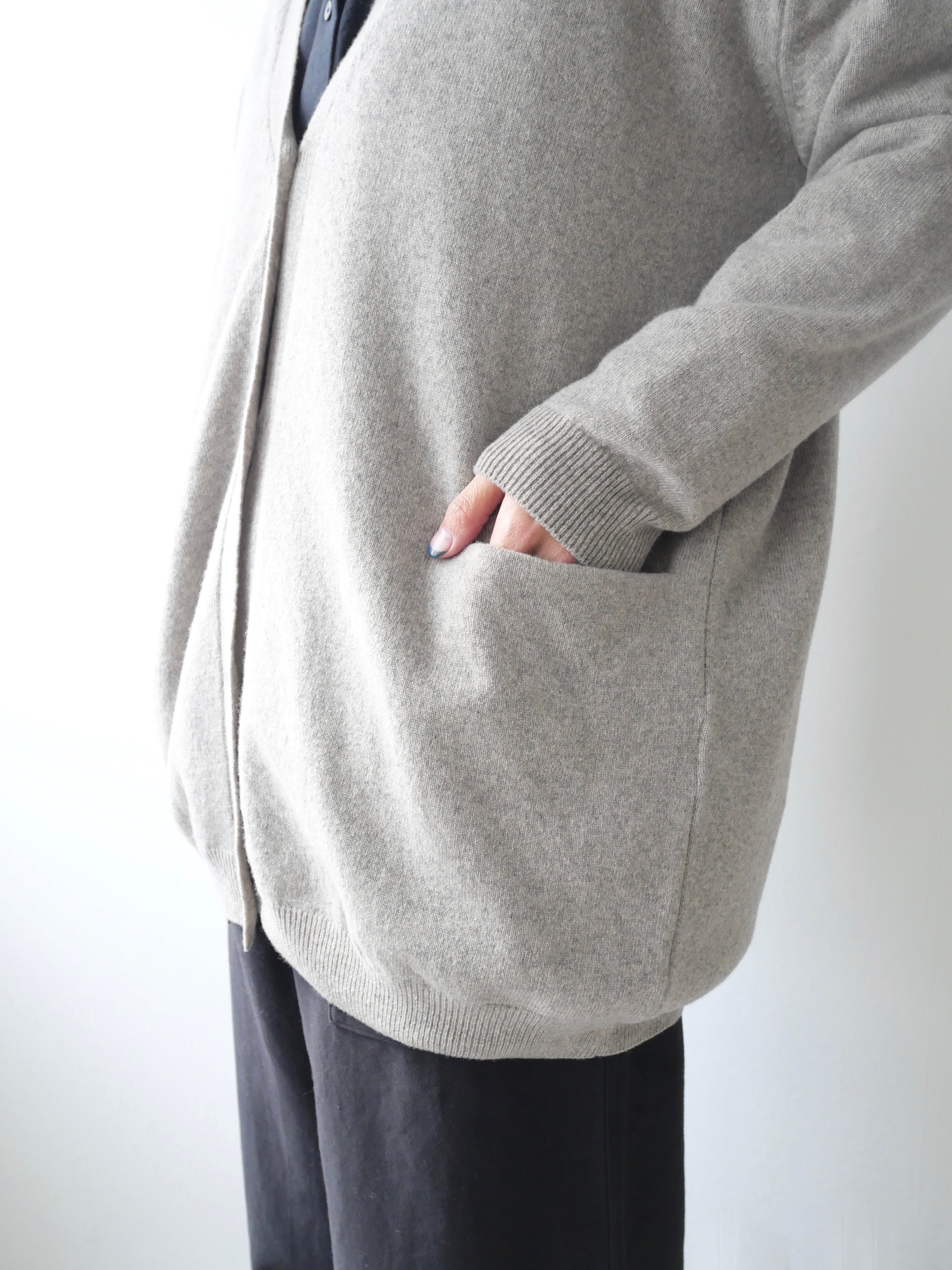 ニュージーランド最高峰の山岳地帯で飼育されているファインメリノウール。寒い地域で育ったウールの毛は、カシミヤと並ぶほどの細くなめらかな繊維です。柔らかく、ふくらみのある風合いと軽い着心地で、取り入れやすいシリーズ。ヒップが隠れるゆったりとしたシルエットのカーディガンは、メンズライクなデザインが特徴です。