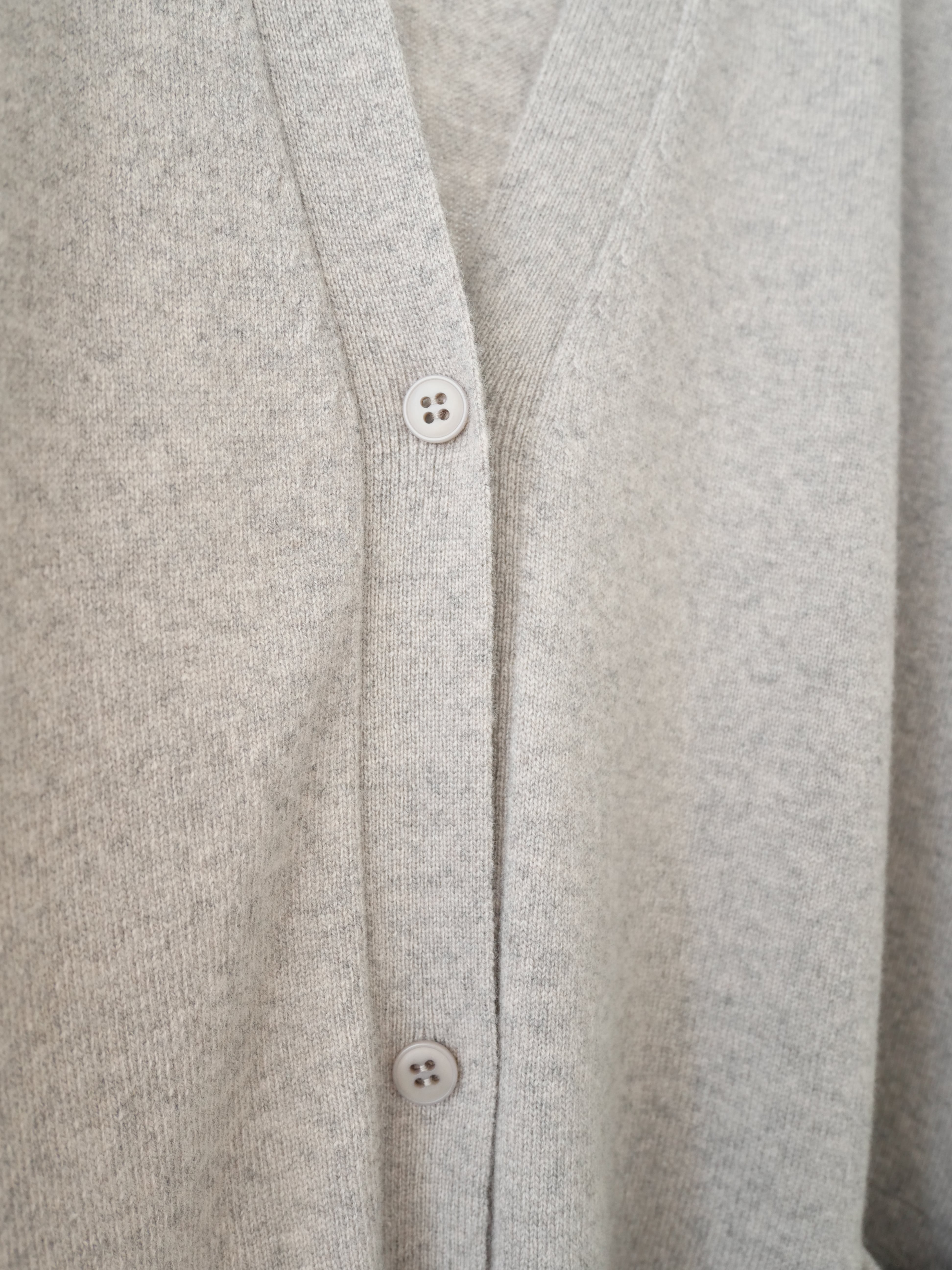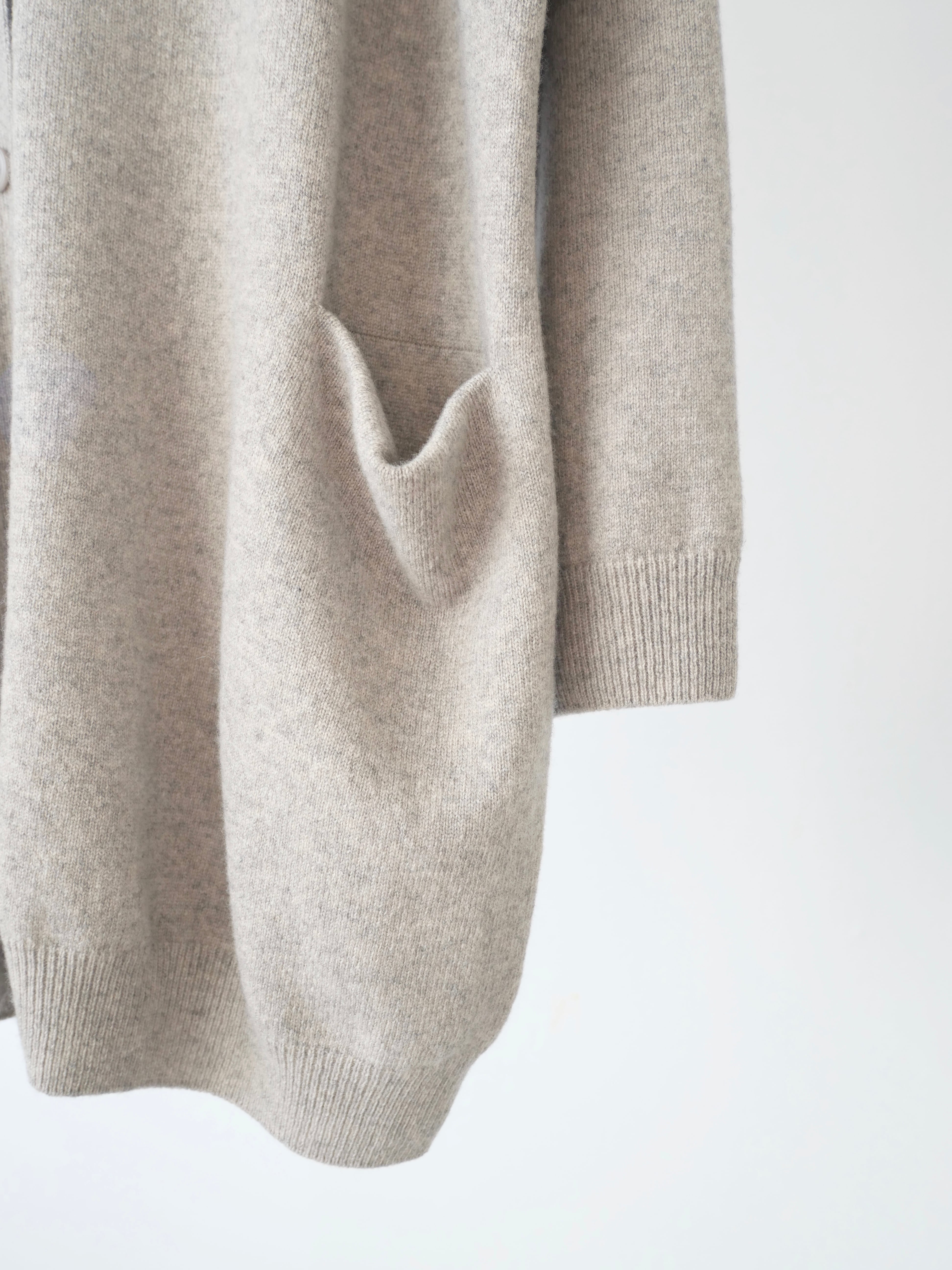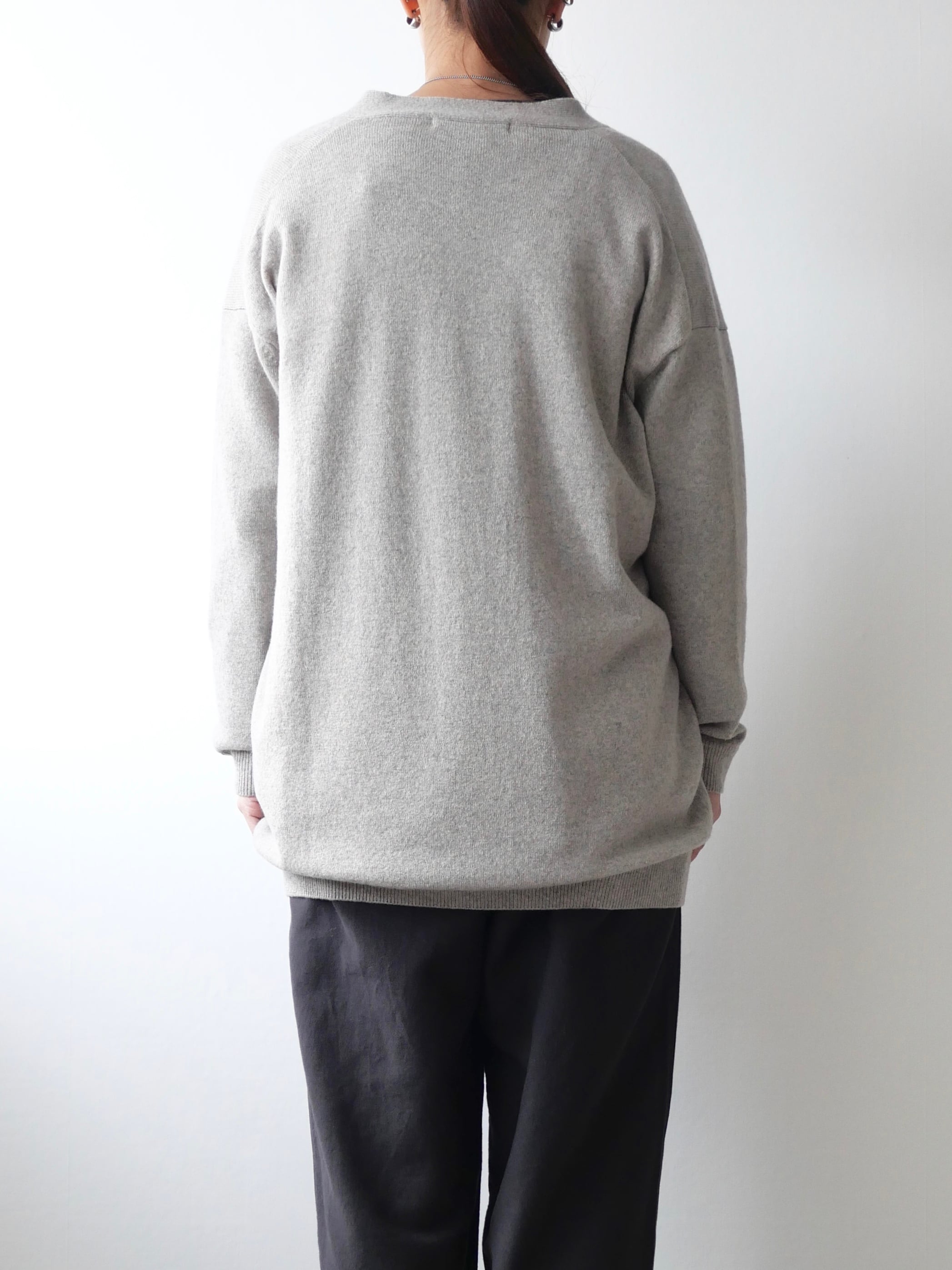 ニュージーランド最高峰の山岳地帯で飼育されているファインメリノウール。寒い地域で育ったウールの毛は、カシミヤと並ぶほどの細くなめらかな繊維です。柔らかく、ふくらみのある風合いと軽い着心地で、取り入れやすいシリーズ。ヒップが隠れるゆったりとしたシルエットのカーディガンは、メンズライクなデザインが特徴です。