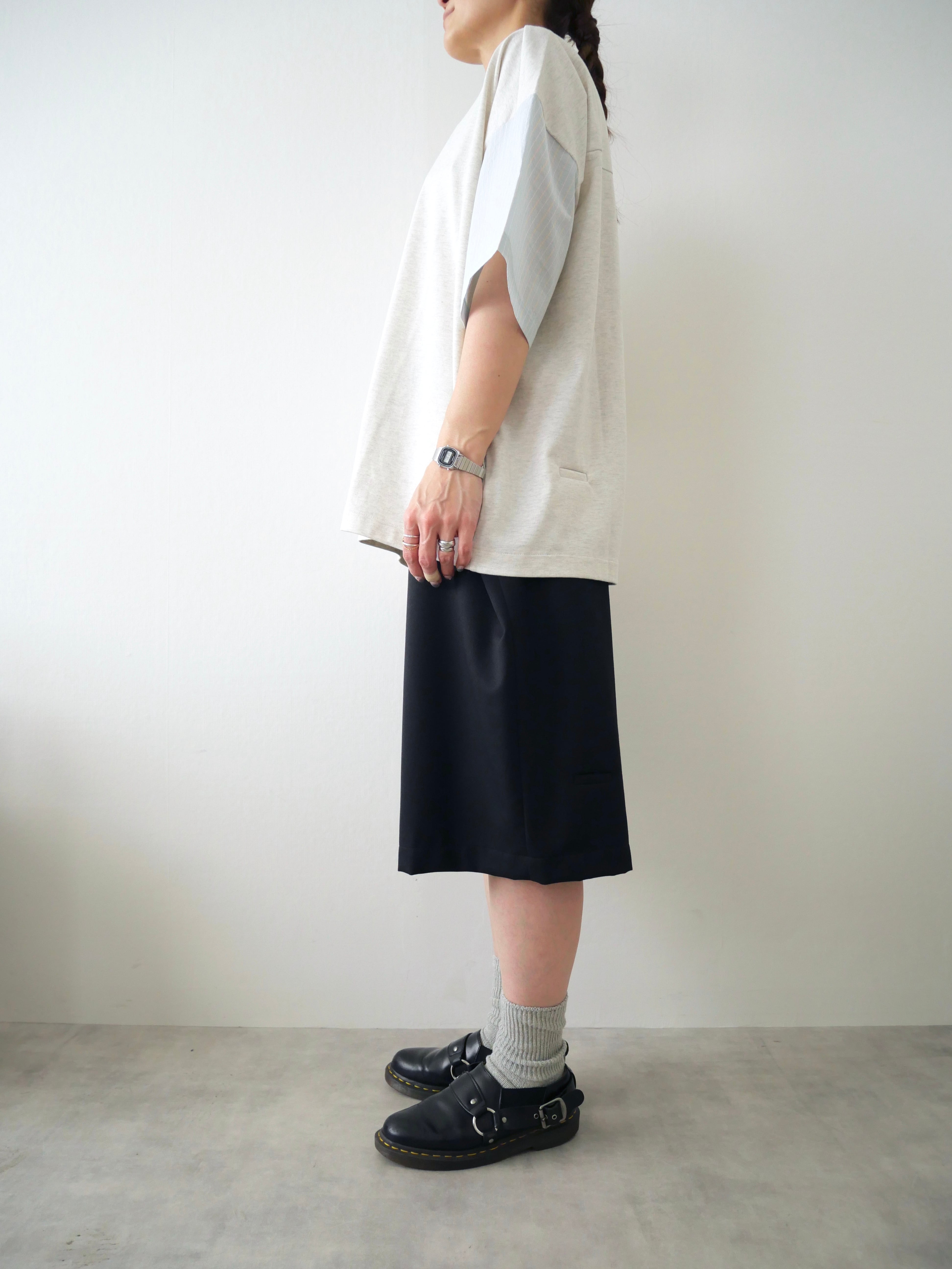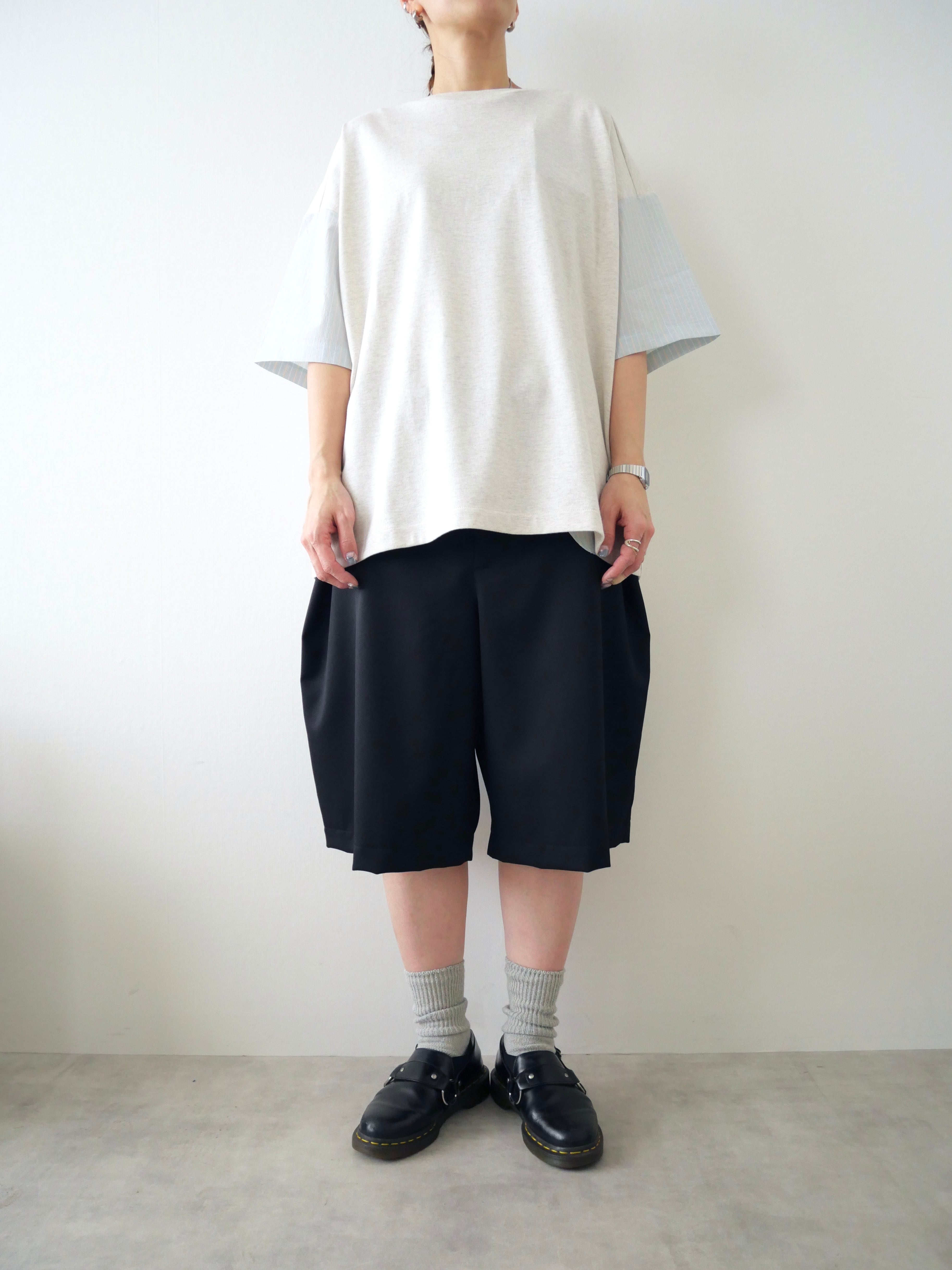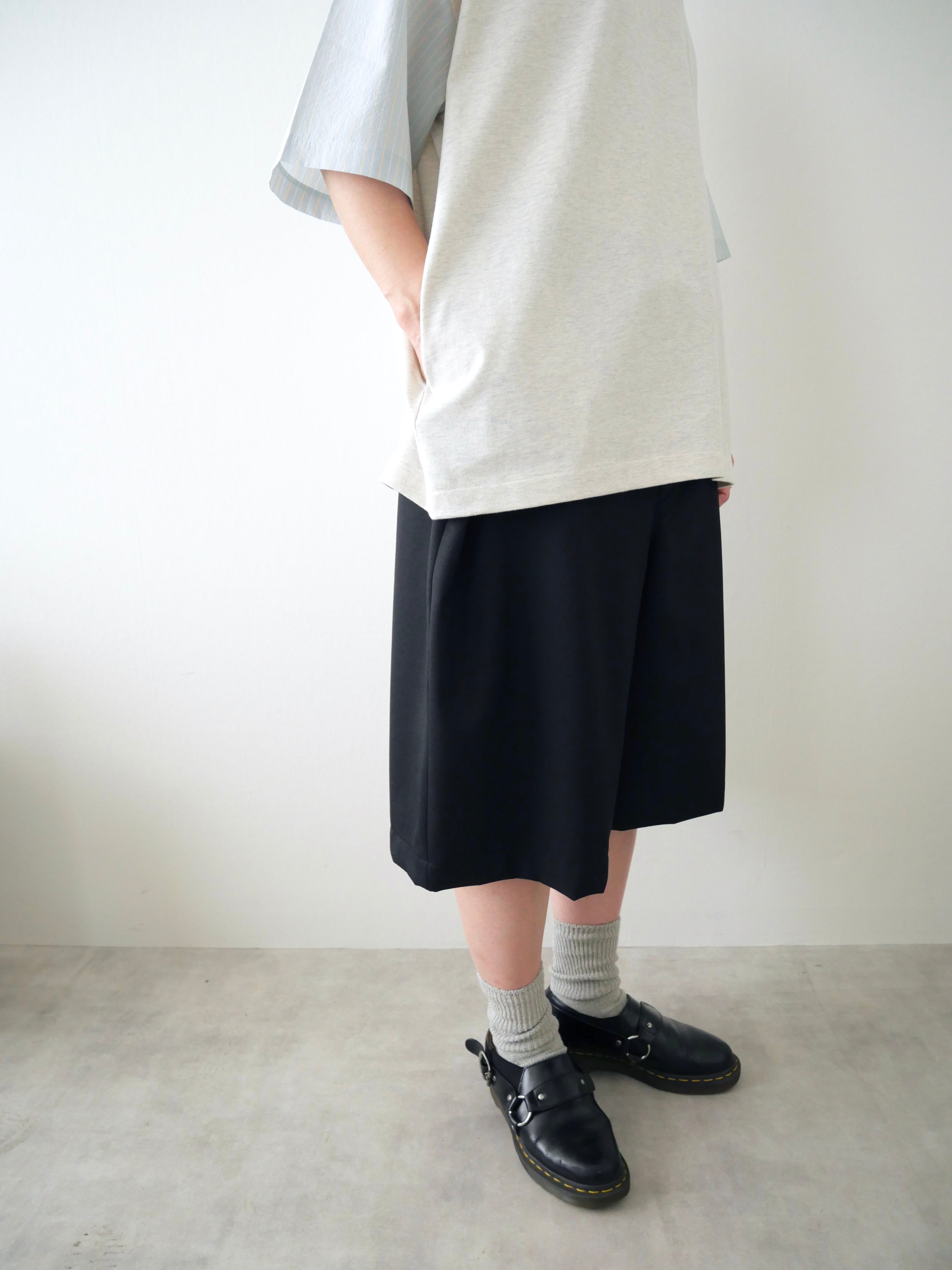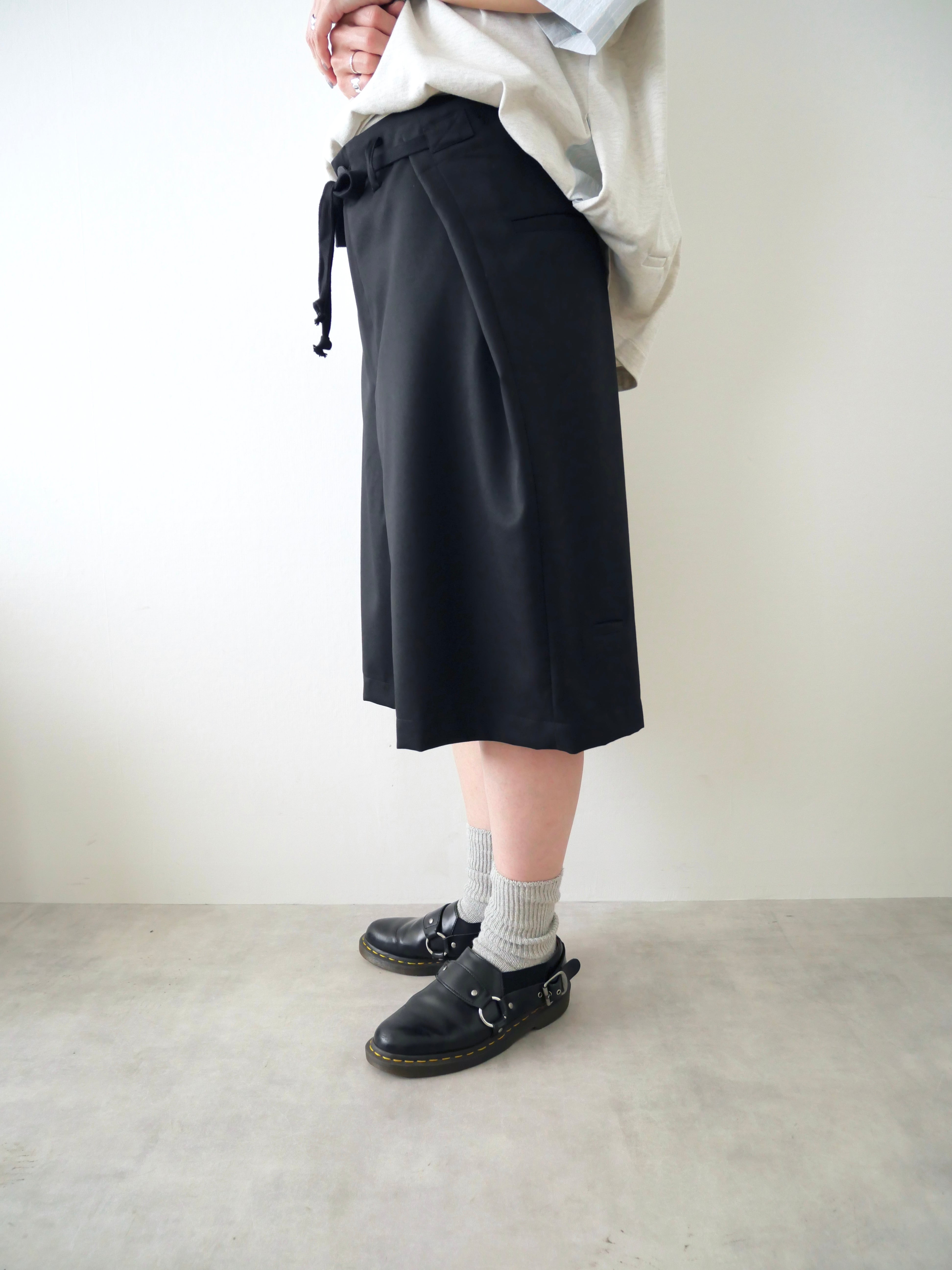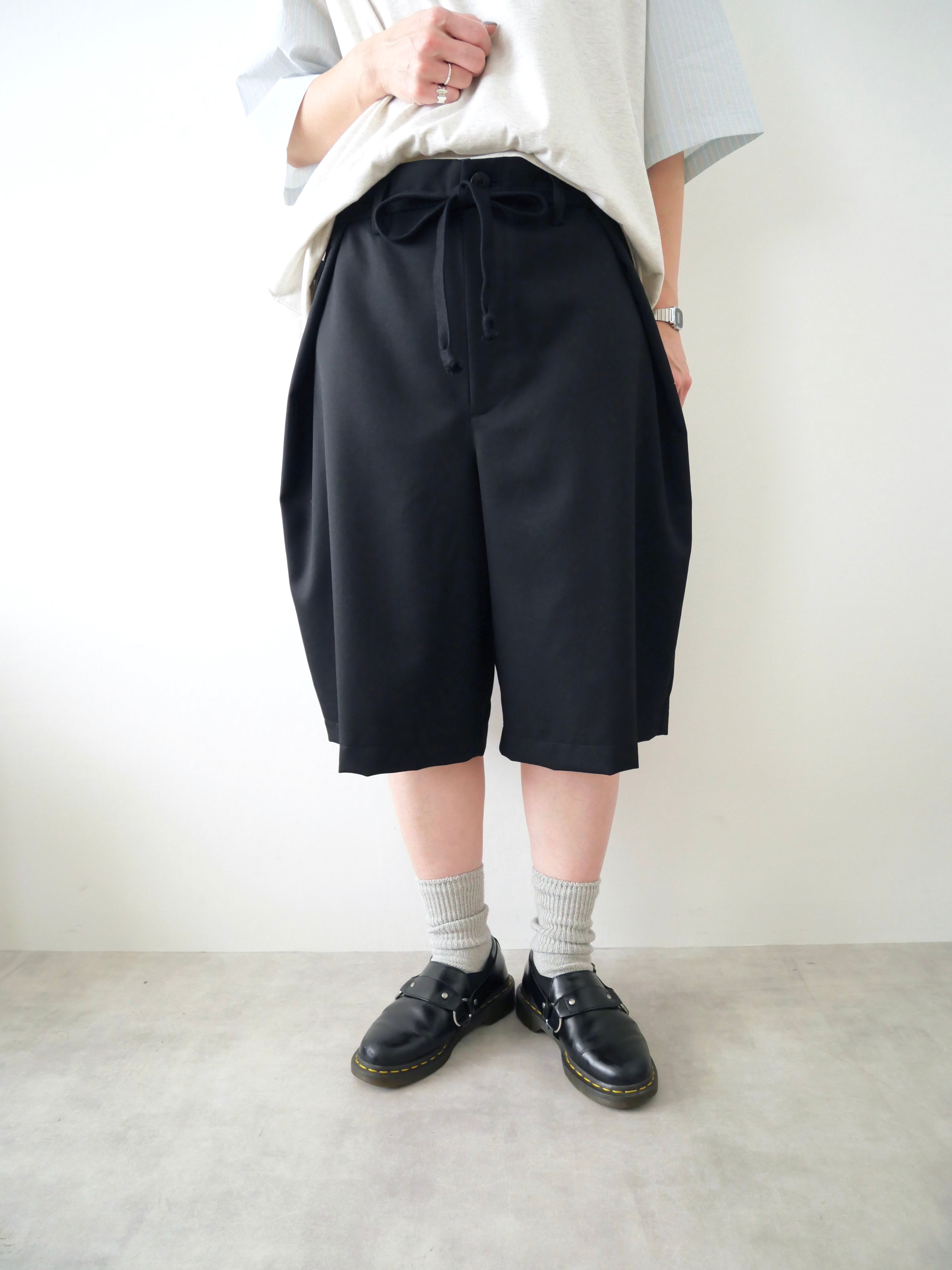 贅沢に生地をつかいワイドなシルエットを作り出したショーツです。
